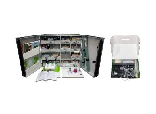 - Содержит готовые к применению реагенты, тест-системы, портативные средства дозировки проб, мерную пластмассовую и стеклянную посуду и другое оборудование;